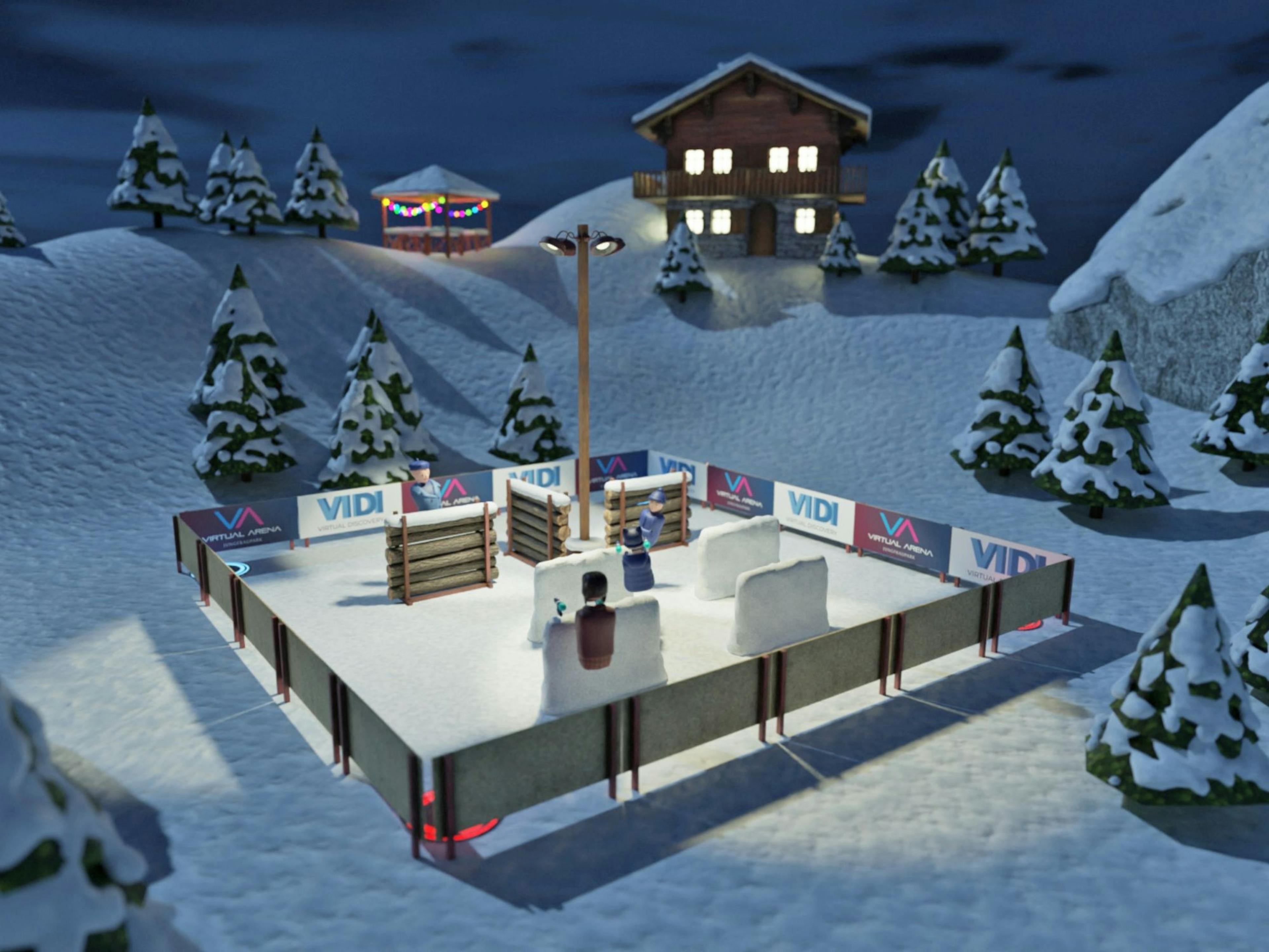 The playing field of Virtual Adventure is over 100m² large. You play the game “Wild Wild West” as a duel. Two teams play against each other per round, with each team consisting of two to three people.