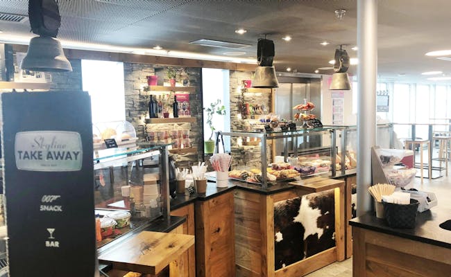Das Skyline Take Away befindet sich innerhalb des Gipfelgebäudes und bietet Gerichte zum Mitnehmen an. Der Raum kann ebenso für Steh-Apéros oder Präsentationen genutzt und gemietet werden und ist für maximal 150 Personen ausgelegt. Neben Snacks findest du hier auch kalte und warme Getränke. Das Take Away eignet sich insbesondere für Besucher, die in kurzer Zeit möglichst viele der Sehenswürdigkeiten am Schilthorn erleben möchten.