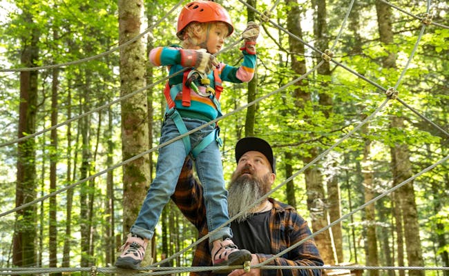 Pfideripark — это зона для самых маленьких гостей в веревочном парке DiscOWer. Элементы расположены на небольшой высоте и подходят для детей, которые только делают первые шаги на веревочном маршруте.