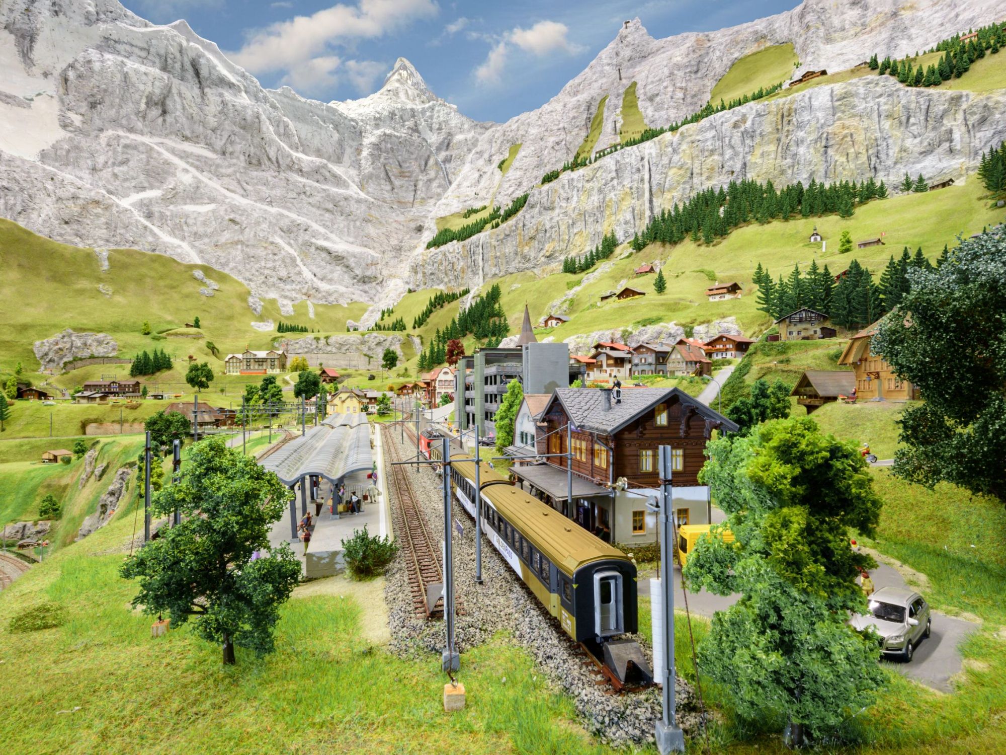 Vielfältige Interaktionsknöpfe, fahrende Züge und Lastwagen erwecken die Miniaturwelt zum Leben. Drücke einen Knopf und schaue Mini-Menschen beim aufregenden River Rafting zu. Setze eine Seilbahn in Bewegung und bestaune Velofahrer bei einer gemütlichen Rundfahrt um den See.