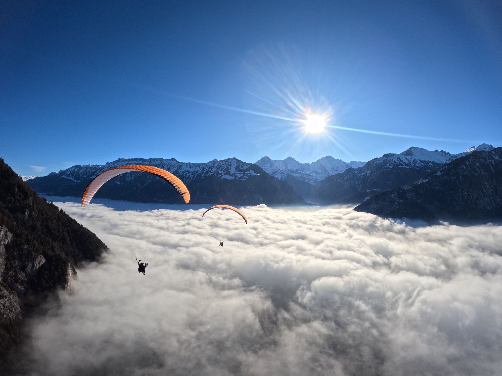 由于因特拉肯全年提供理想的飞行条件,您可以全年进行滑翔伞运动。无论是夏季还是冬季,您都能体验到瑞士四个季节的魅力!