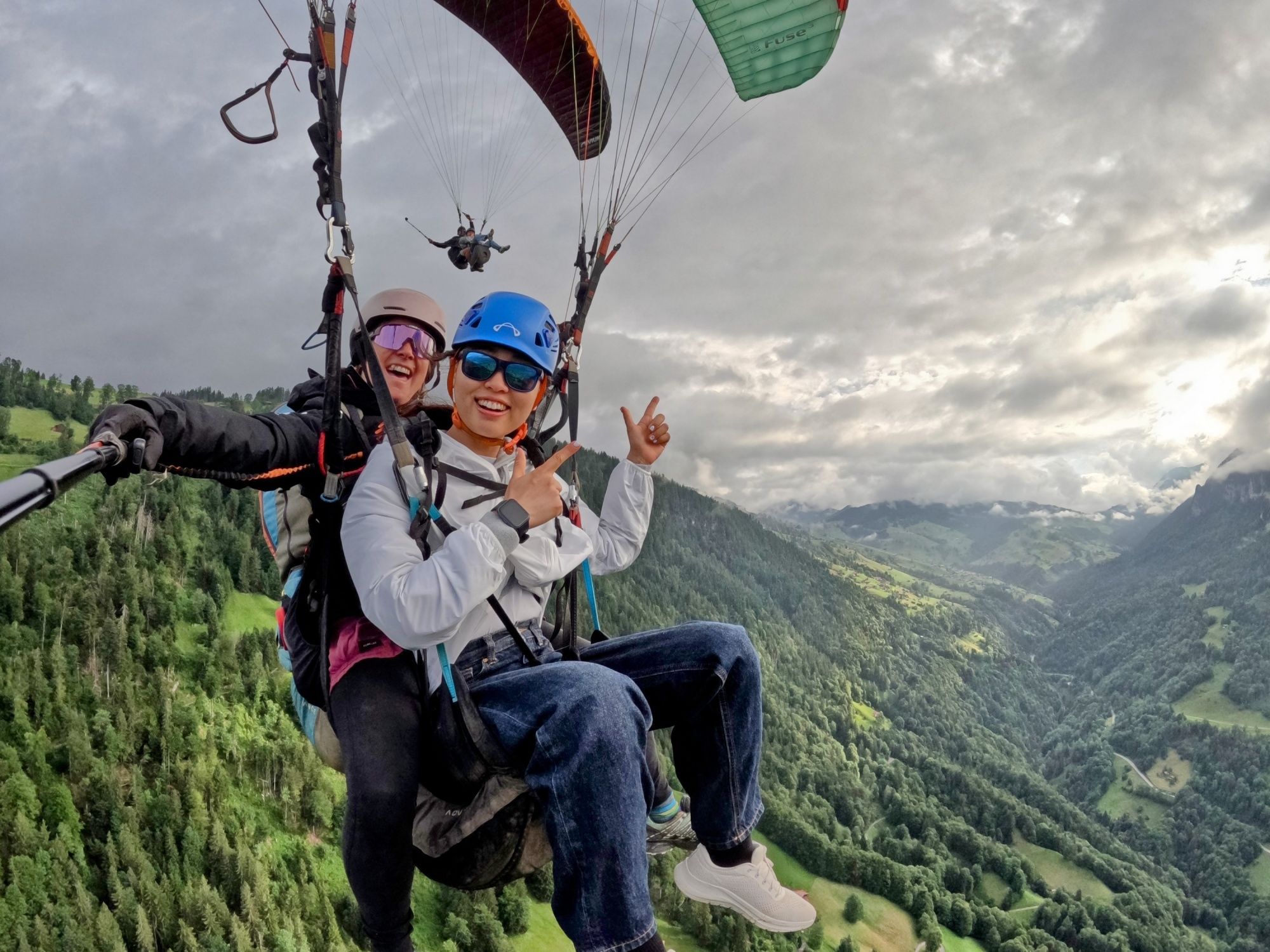 您被牢牢固定在安全带中,最终与您的飞行员从起飞点起飞。在飞行中,您将享受肾上腺素的刺激和令人惊叹的景色。着陆将在因特拉肯的霍赫马特进行。